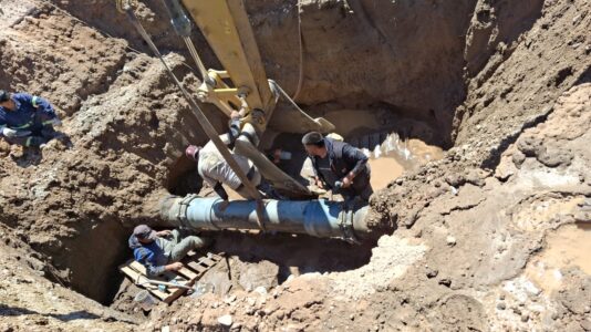 Cinco Saltos: Intenso operativo permitió finalizar la reparación del acueducto principal tras 20 horas de trabajo