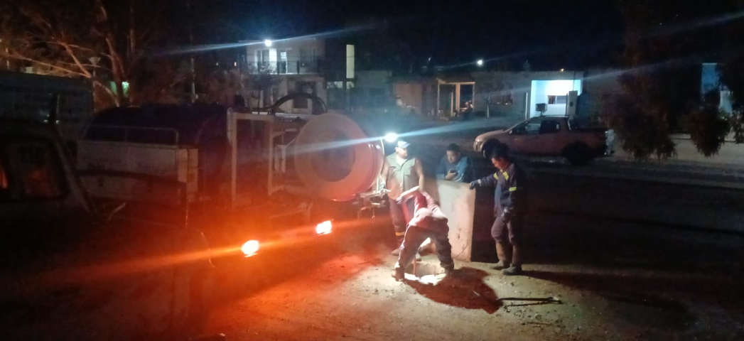 Aguas Rionegrinas informa que, tras las intensas lluvias registradas en un corto período de tiempo, las cuadrillas locales estuvieron trabajando de manera ininterrumpida hasta altas horas de la noche para normalizar diversos puntos críticos de la red cloacal en San Antonio Oeste.