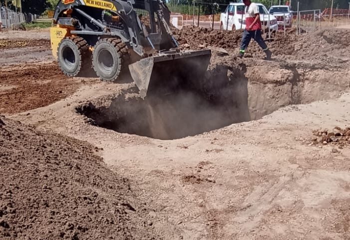 Aguas Rionegrinas informa a los vecinos de Allen que hoy han comenzado las tareas de relleno del pozo donde el sábado pasado se realizaron los trabajos de reparación del acueducto principal, a la altura de calle Martín Fierro y Ruta 22.