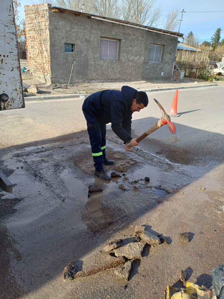 Los trabajos son concretados por una cuadrilla especializada de Aguas Rionegrinas en conjunto con personal del servicio de Ramos Mexía.Tras una inspección ocular por el sector, se decidió recambiar las cañerías que presentaban desgaste por el paso del tiempo.