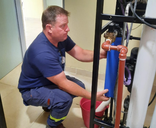 En esta recorrida también se inspeccionó y realizó mantenimiento de las plantas de osmosis inversa instaladas en Aguada Guzman, El Cuy y Colan Conhué. Estas plantas producen agua potable para el consumo humano, mientras que el agua de la red es para uso sanitario.