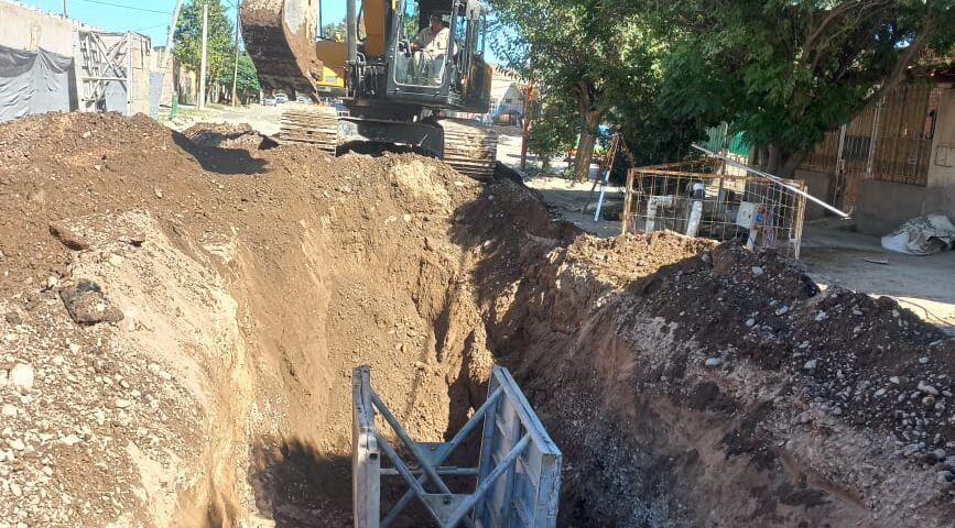 La obra, que es llevada adelante por la empresa Contratada Arideros, implica una inversión provincial de $179.399.948 y contempla el recambio de más de 400 metros de cañería cloacal.