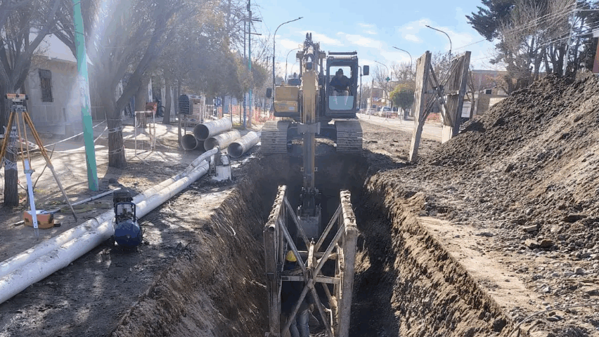 Aguas Rionegrinas informa que avanza a buen ritmo el recambio del colector cloacal de calle Naciones Unidas, una obra clave para mejorar el servicio sanitario en Cipolletti.