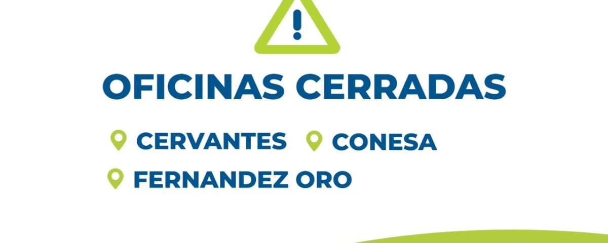 6 enero, 2022Hasta el viernes estarán cerradas las oficinas de Fernández Oro, Cervantes y Conesa