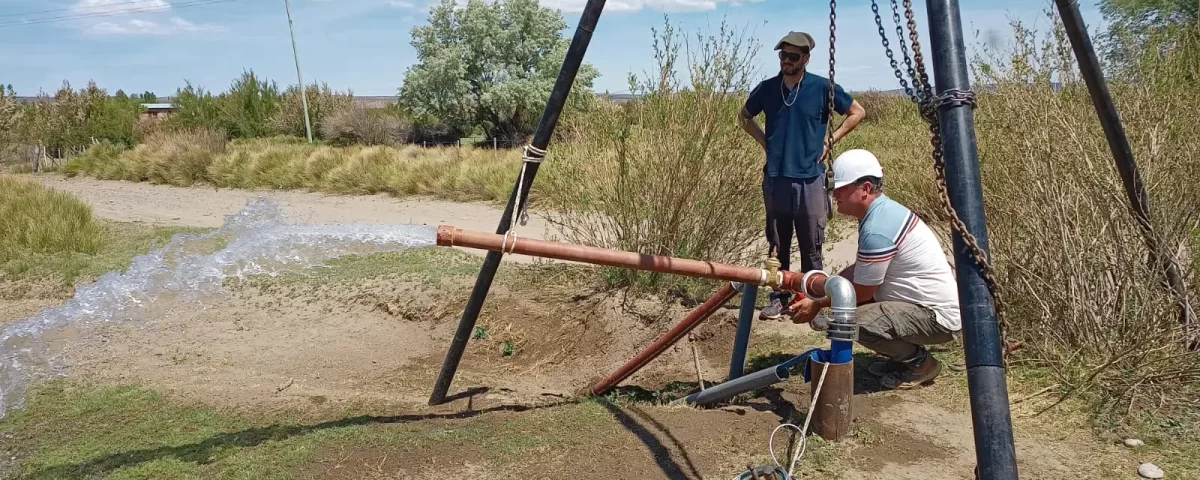 Equipo técnico del Departamento Provincial de Aguas, junto a personal de Aguas Rionegrinas, realizó una perforación y ensayo de bombeo en Aguada de Guerra y Naupa Huen en vistas a la necesidad de incrementar la dotación de agua en los parajes.