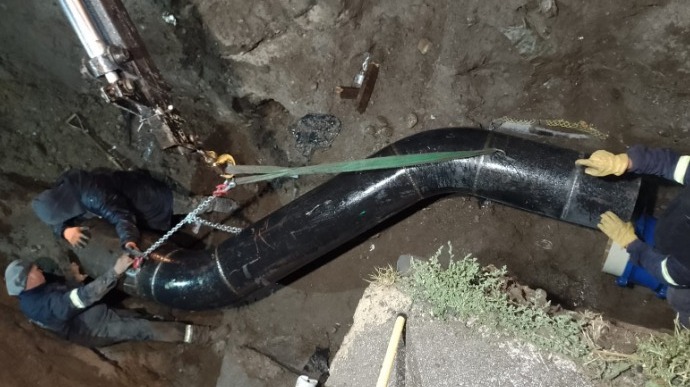 Aguas Rionegrinas informa que durante la madrugada de este miércoles finalizó con éxito la instalación de la pieza clave para reemplazar el tramo dañado del acueducto en Barrio La Cumbre.