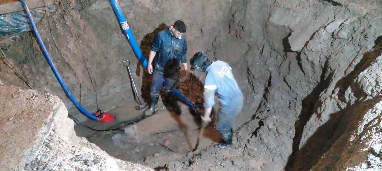 Aguas Rionegrinas informa que se está trabajando sobre la reparación que se realizó en el acueducto de calle Malen de la ciudad de Viedma.